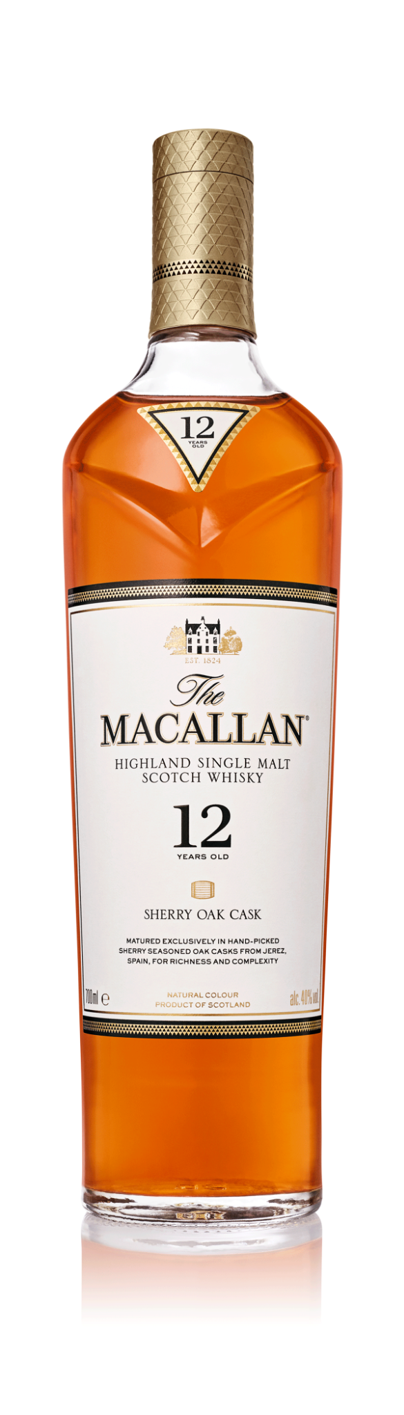 Nhờ những thùng gỗ sồi sherry được chọn lựa thủ công, Macallan 12 năm Sherry Oak có một hương vị và màu sắc rất độc đáo. Với màu vàng hổ phách nhạt đầy tự nhiên giữa màu rượu và gỗ sồi, loại rượu này nhanh chóng chinh phục người thưởng thức từ ánh nhìn đầu tiên. Tiếp đó là hương vani nồng nàn, cay nồng của gừng, ngọt ngào của trái cây khô, kẹo bơ thoảng vị khói.